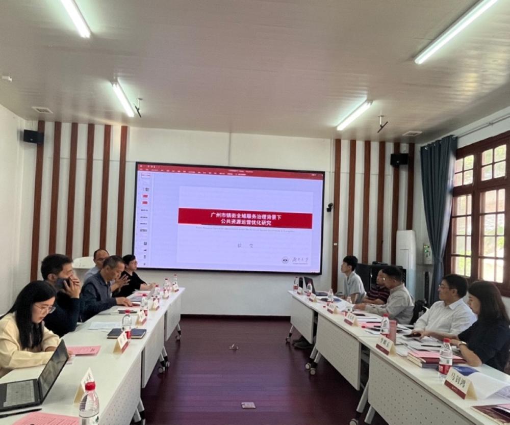 徐莹教授介绍了广州市镇街全域服务治理背景下公共闲置资源盘活利用课题研究的基本情况。徐莹教授首先介绍了课题研究的项目背景,暨广州全域服务治理的基本内涵,并从公共闲置资源盘活利用的现状、问题和对策三个方面对项目课题的研究进展和中期成果进行详细介绍。