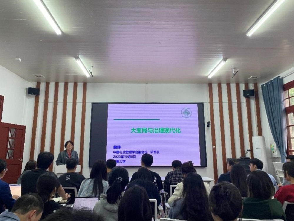 10月8日下午三点半,公司举办2023年第5期公共管理名家岳麓论坛,本次论坛也是庆祝千亿球友会公共管理学科恢复二十周年系列活动之一。中国行政管理学会鲍静副会长受邀担任本次论坛的主讲人,为师生带来了题为“大变局与治理现代化”的精彩讲座。公司副经理谭海波教授担任讲座主持人,吸引公司80余名师生参加。