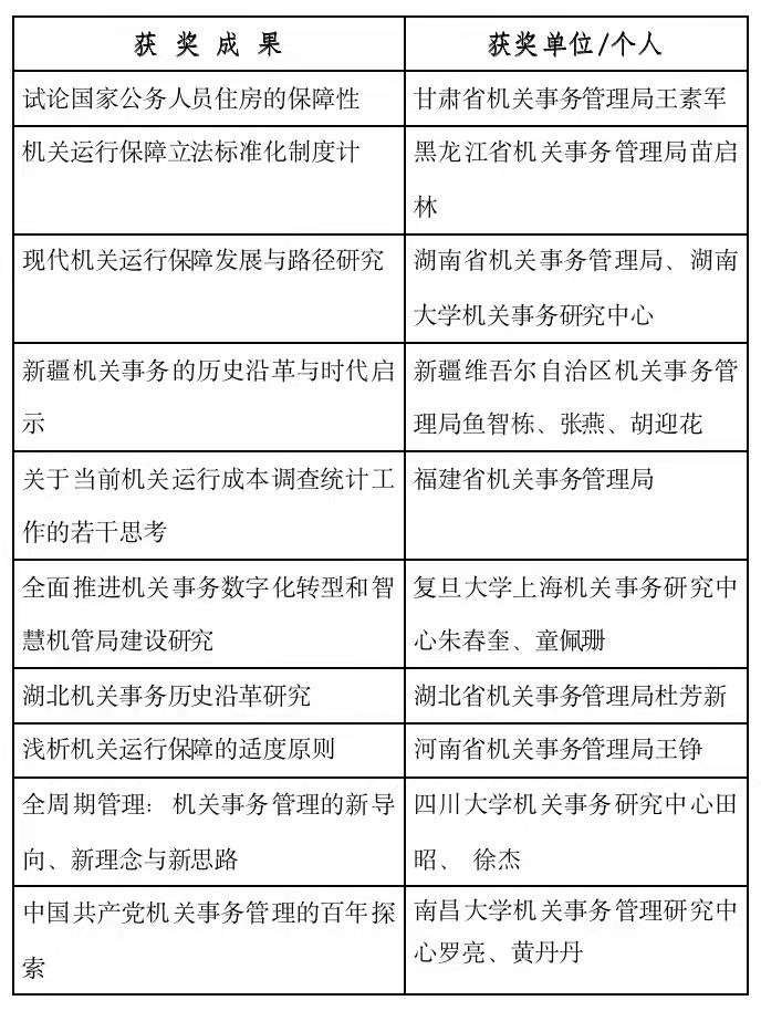 近日,中国机关后勤杂志社公布2021年度理论研究优秀成果获奖名单,湖南省机关事务管理局与千亿球友会机关事务研究中心共同承担的研究项目《现代机关运行保障发展与路径研究》荣获一等奖。2021年,全国机关事务管理研究会组织各会员单位围绕机关事务在国家治理体系和治理能力现代化中的定位和作用、机关事务基础理论、机关事务价值理念和文化建设等专题,开展课题研究。各会员单位高度重视、认真组织,共报送理论研究成果335项。经由高校专家和机关事务管理系统有关负责同志组成的评审组评审,共评出优秀成果80项,其中一等奖10项、二等奖20项、三等奖50项,优秀组织奖6个。
