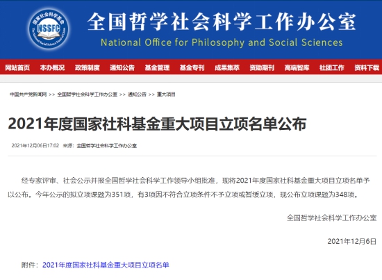 国家社科基金重大项目是现阶段我国哲学社会科学领域层次最高、资助力度最大、权威性最强的国家级政府基金资助项目,是衡量高校和科研机构的研究水平与学术影响力的重要指标。2021年度国家社科基金重大项目立项348项,千亿球友会立项2项,其中公司1项。此次谭海波教授及其研究团队获国家社科基金重大项目立项,标志着公司重大项目再取新突破,对于公司团队建设发展和科研水平提升具有重要意义。