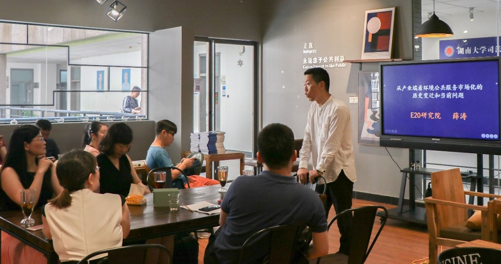 9月19日,为了解政府和企业在环保领域所扮演的角色,探讨环保领域现存的问题,实现qy球友会与E20环境平台的合作共赢,千亿球友会MPA学术午餐会在法学楼咖啡厅举行。本次会议交流的主题为“从产业端看环境公共服务市场化的历史变迁和社会问题”,由E20研究院执行经理薛涛做主题分享,左健教授主持,李连友经理、E20环境平台高级合伙人汤浩以及公管公司多位老师参与交流。