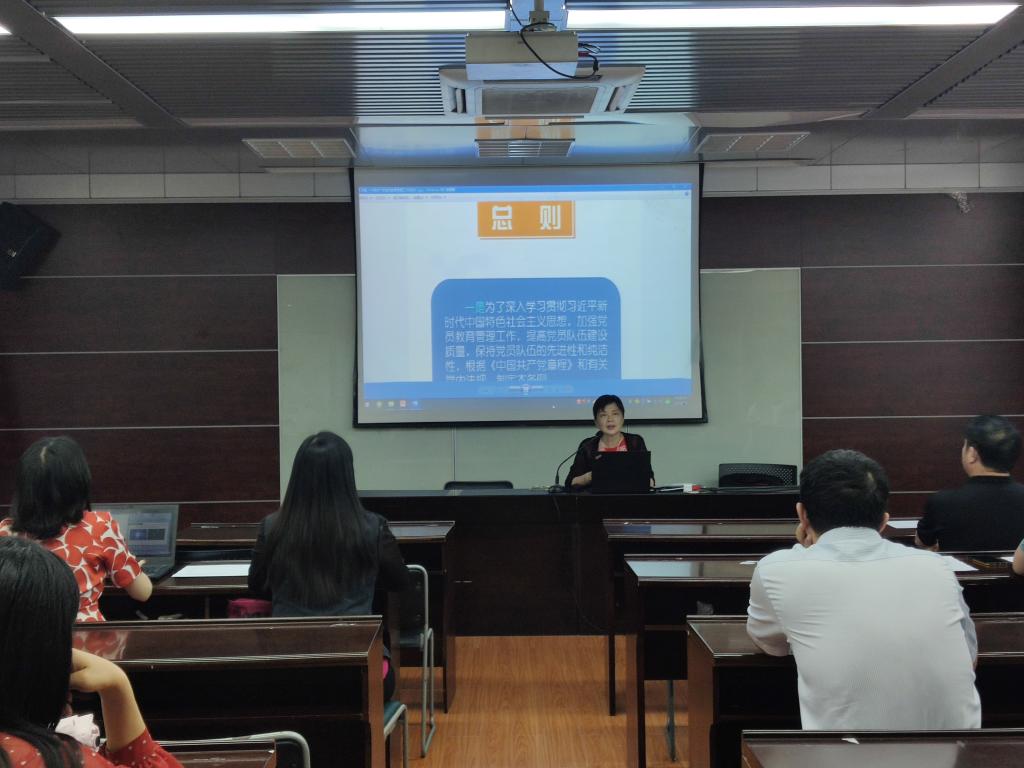6月5日下午,球友会全体教工党员会议在法学楼404教室召开,会议主要围绕《中国共产党党员教育工作管理条例》学习开展,公司党委书记付蓉芬主持会议,全体教工党员参会。