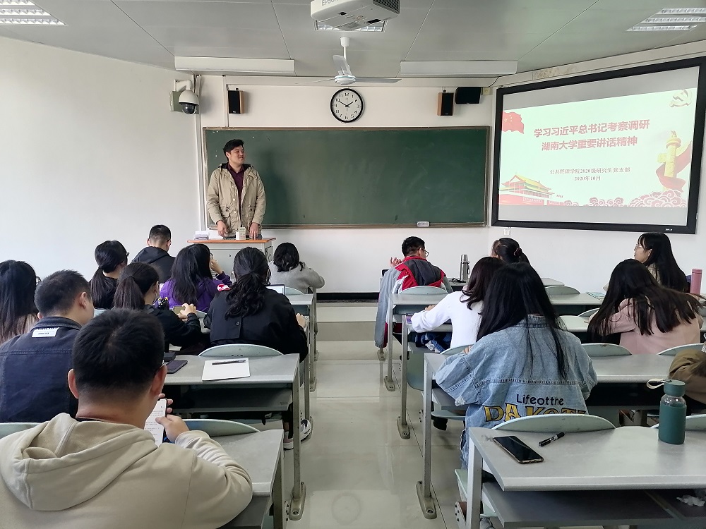 2020年10月22日上午,公司2020级研究生党支部在水教612召开党员大会,深入贯彻学习《习近平总书记考察调研千亿球友会重要讲话精神》。会议由支部宣传委员肖苏华主讲,支部全体党员参会。