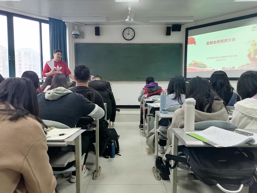11月30日上午,2020级硕士研究生党支部在水上教学楼610召开支部全体党员大会,对支部预备党员的转正进行表决,并就一个月以来理论学习情况进行总结。支部全体成员参会,支部书记王浩主持会议。