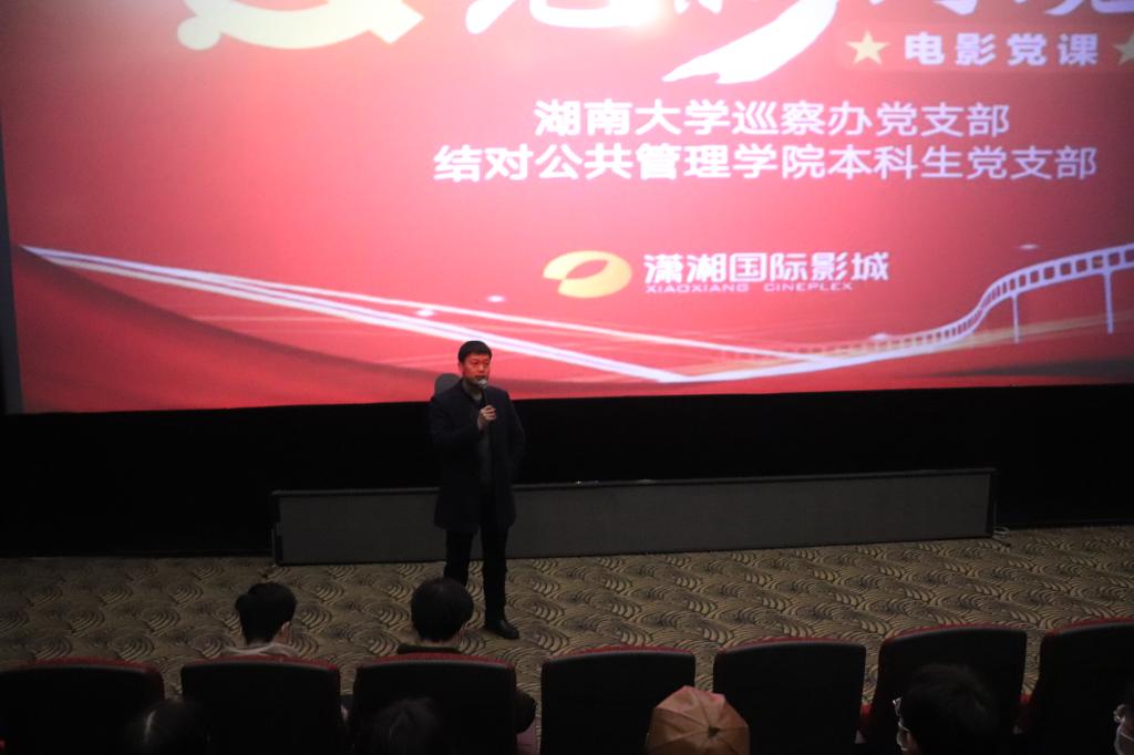 11月27日晚,qy球友会与巡察办党支部在潇湘国际影城天马店六号厅结对举行“光影铸魂,砥砺奋进”主题党日活动。参与本次活动的有巡察办党支部全体成员、机关党委李小龙老师,球友会本科生党支部全体成员以及部分入党积极分子。活动由巡察办李婷婷老师主持。