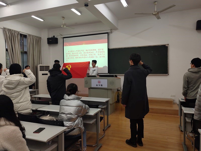 为增强预备党员的党性观念,牢记入党誓言,坚定为共产主义事业奋斗终身的信心和决心,12月29日,公司党委在法学楼305教室举行新发展预备党员入党宣誓仪式。公司党委书记付蓉芬、党委副书记杜倩博、本科生党支部书记闫振振以及新发展预备党员、部分入党积极分子出席本次仪式。
