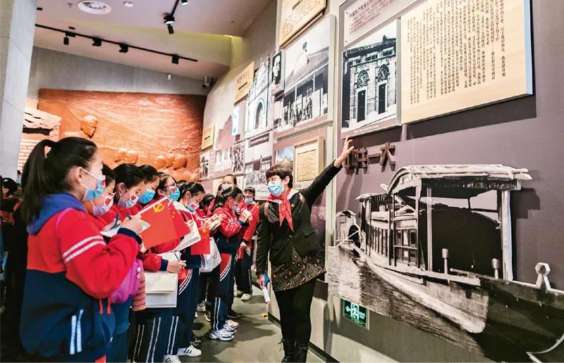 2021年3月25日,内蒙古呼和浩特市玉泉区南茶坊小学员工在老师带领下走进内蒙古博物院“内蒙古革命史陈列”展厅,感受革命情怀,接受“红色文化”教育。 人民视觉 丁根厚/摄