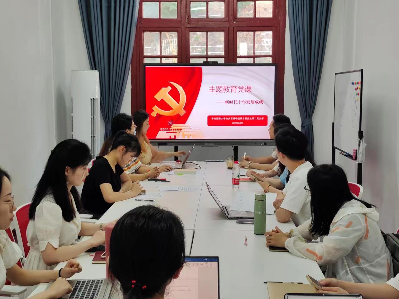 2023年5月29日下午,球友会硕士研究生第二党支部在院楼214室召开新时代十年发展成就党课专题学习会。支部书记张佳乐主讲,支部全体党员同志参加。