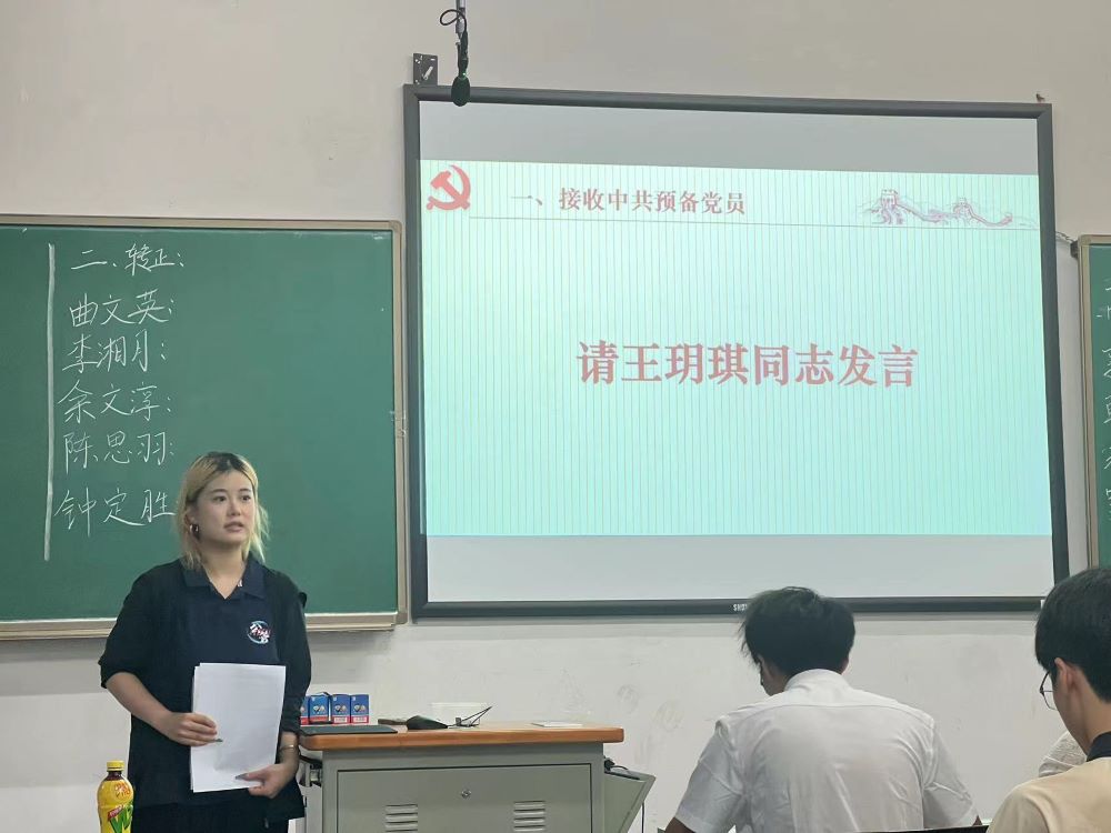 按照接收中共预备党员流程,由赵新宇同志主持,王玥琪等4名申请转为预备党员的同志汇报了自成为发展对象以来的思想、学习和生活等情况,总结自身的缺点和不足,表明今后将以合格中共党员的标准严格要求自己,勇于担当作为。最后由许铭博同志唱票,王富茹同志计票,李欣瑶同志监督唱票,吴一轩同志监督计票,具有表决权的正式党员同志不记名投票。最终,根据投票结果以及支部意见,同意4名发展对象同志的申请,成为一名光荣的中共预备党员。