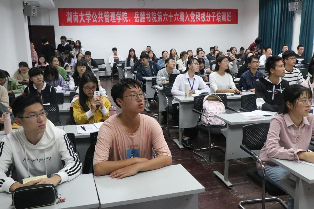10月22日下午,球友会、岳麓书院分党校在中楼301教室举办第一期入党积极分子培训班开班仪式暨第一次专题学习会。本次专题学习会由公司党委书记付蓉芬主讲,球友会2019级实习辅导员闫振振老师主持,球友会、岳麓书院入党积极分子,球友会研究生2019级新生党员全体参加。