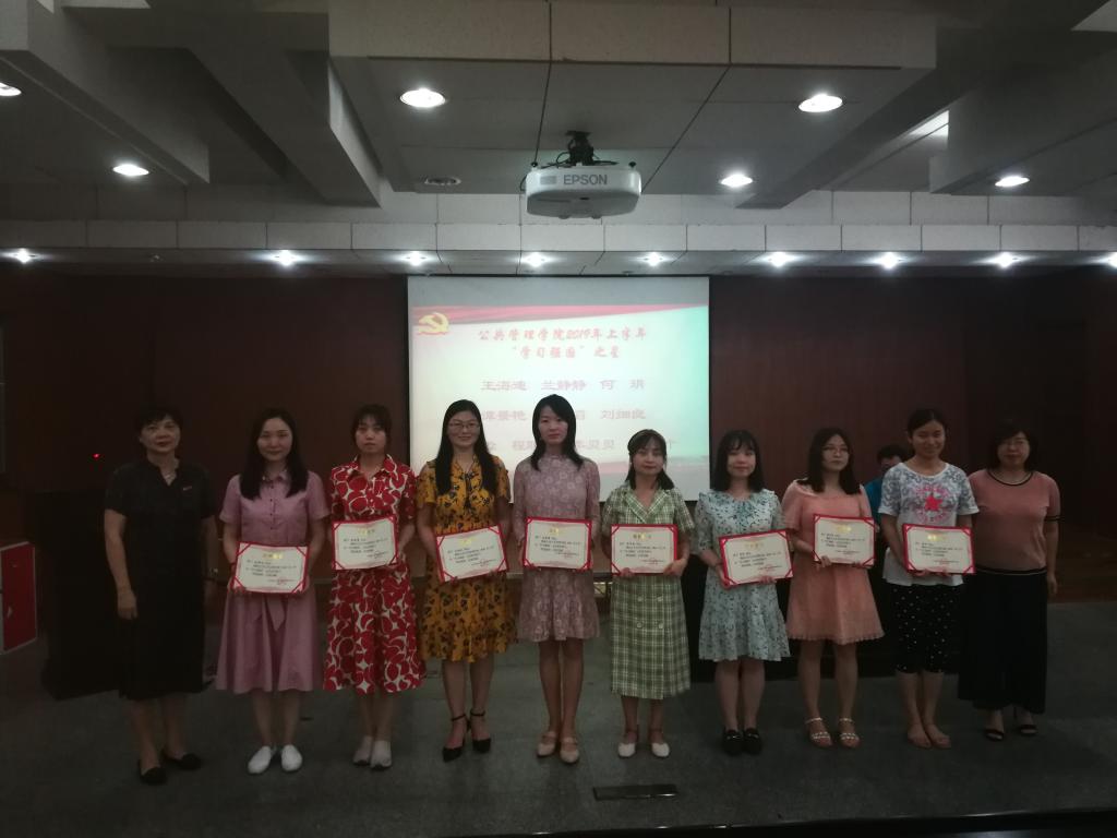 在大会表彰环节,副经理雷玉琼同志宣读了表彰决定。本科生党支部与研究生2017级公共管理党支部被评为“先进员工党支部”;公共政策研究联合党支部获评“最佳主题党日活动”。