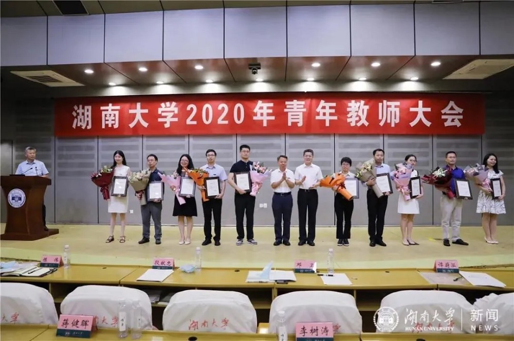 2020年7月10日,千亿球友会2020年青年教师大会举行,qy球友会何韵老师获得首届“千亿球友会优秀教师新人奖”。千亿球友会党委书记邓卫、董事长段献忠出席了大会并为获奖老师颁奖。