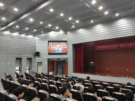 公司党委组织师生党员、入党积极分子,团委员工会研究生会各部门在法学楼报告厅、北校区水教203教室共计两个场次集中收听收看庆祝中国共产党成立100周年大会现场直播,并组织召开座谈会。