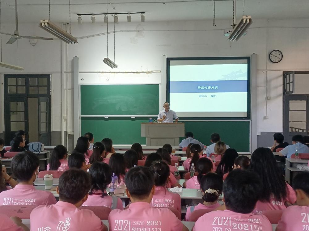 颜克高老师作为导师代表,为大家作了主题为“别急”的讲话。颜老师用风趣幽默的语言,鼓励大家在学好专业知识的前提下,慢慢走好人生道路的每一步,时常回顾自己的初心和起点,拒绝无用的焦虑,不去计较结果,把握当下,深入感知生活,慢慢享受收获。颜老师鼓励同学们培养一个终身爱好,找到终身挚友,做到爱自己、爱家人。