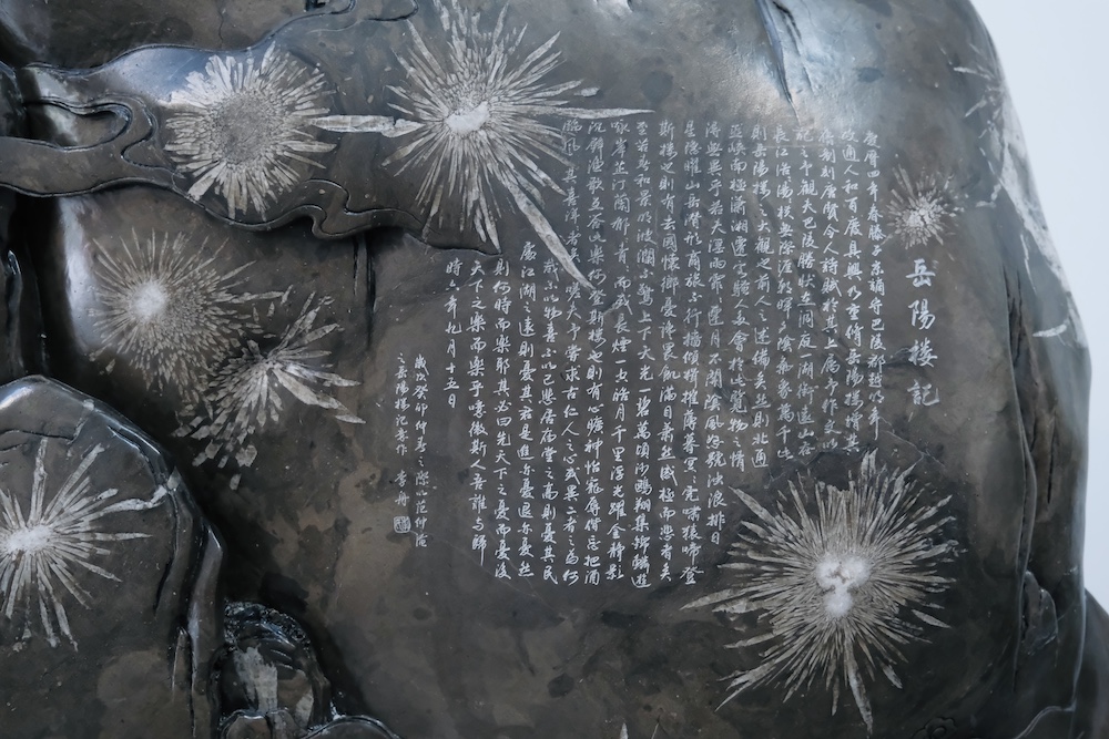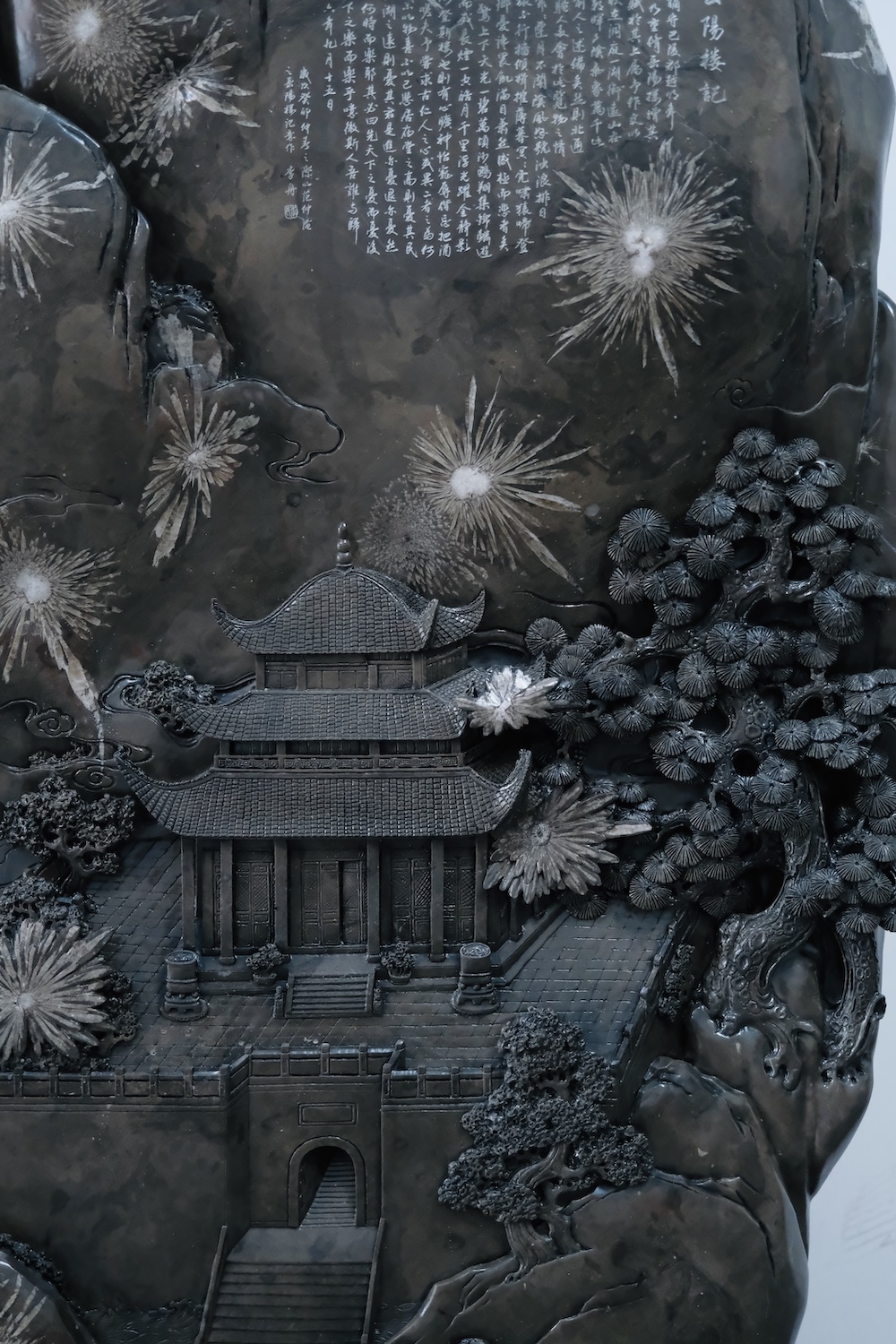雕者,心以载道。这块精美菊花石的雕刻设计出自中国工美行业艺术大师之手,石上雕刻着层峦叠嶂、玉树琼花,在山水映衬下突出雕刻着驰名中外的岳阳楼。石刻右上方雕刻着范仲淹的《岳阳楼记》全文,字体隽秀清雅、潇洒灵动,与精致的雕工融为一体,文字与纹饰相互辉映,构成一块精美绝伦的斑斓菊花石。这块“岳阳楼记”菊花石,寄托着员工对公司的诚挚祝愿,所蕴含的思想精髓与球友会立德树人的办学理念不谋而合。这寓意着公司培养出的优秀公共管理人才,应树立“居庙堂之高则忧其民,处江湖之远则忧其君”的经邦济世之志向,应具有“先天下之忧而忧,后天下之乐而乐”的忧国忧民之情怀,练就“不以物喜,不以己悲”“心旷神怡,宠辱偕忘,把酒临风,其喜洋洋者矣”的旷达洒脱之胸襟。