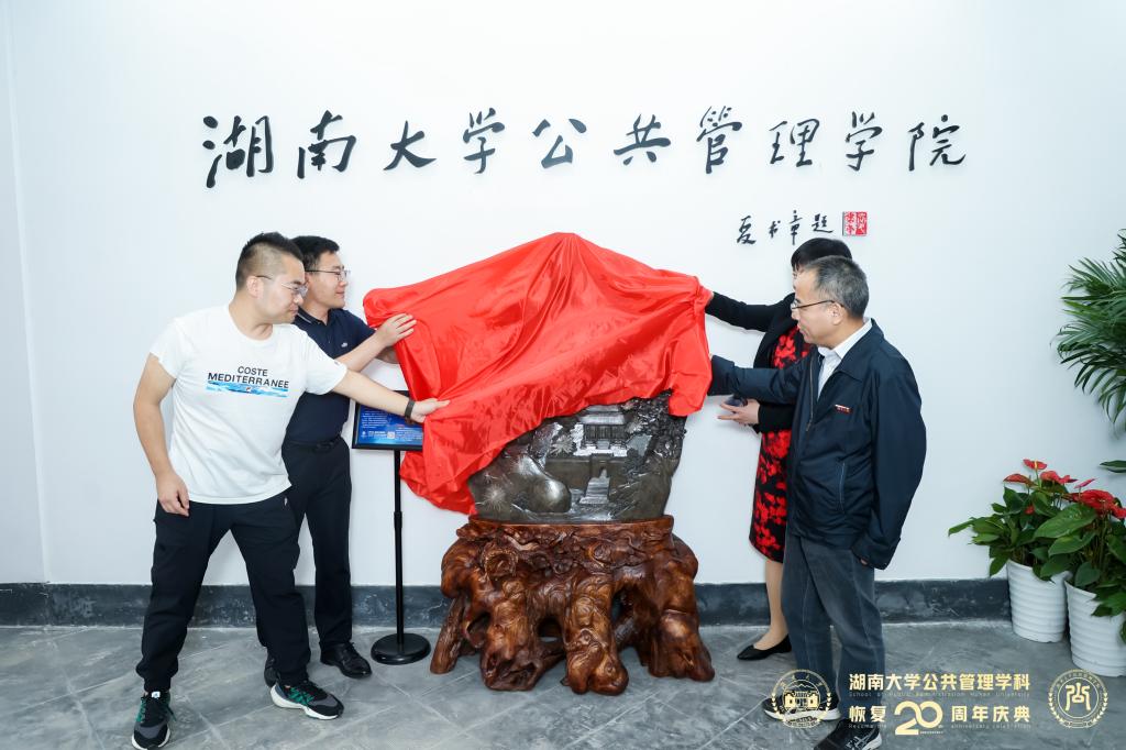 员工捐赠仪式分别在公司正门、入门大厅和公司221会议室举行。在公司正门前,付蓉芬书记、李金龙教授和2008级硕士研究生员工代表张旭东共同为石狮子揭彩。张旭东表示,狮子既是一种力量的象征,也具有丰富的人文内涵,捐赠狮子是对公司老师深情感恩和对公司学子殷切期盼的表达,希望这对石狮子能够守护着公司的每一个师生,继续见证公共管理学科发展壮大的历程。