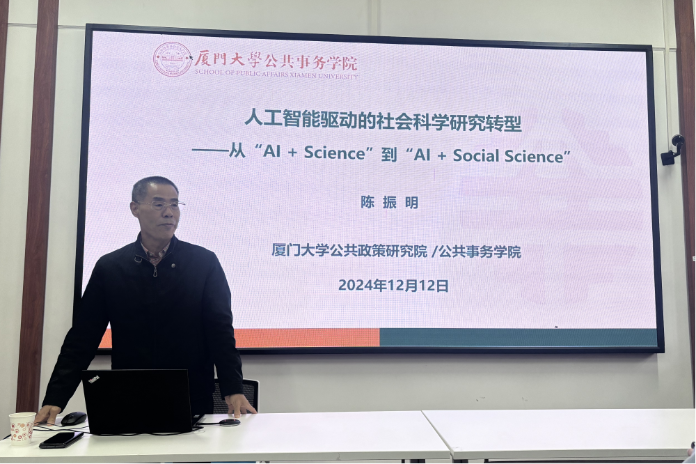 12月12日下午,国家高层次人才、厦门大学公共事务公司创始经理陈振明教授应邀做客公司公共管理名家岳麓论坛,以“人工智能驱动的社会科学研究转型”为题作报告。论坛由公司副经理雷玉琼教授主持。