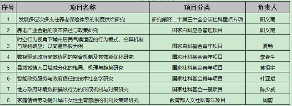 公司成功获得国家及教育部项目立项 8项。其中,阳义南老师获批研究阐释二十届三中全会国家社科重点专项项目和国家自然科学基金专项资助项目共计2项。此外,陈少威、黄祖宇、杜亚斌、李春生等多位老师表现出色,分别获批国家社科基金一般项目和青年项目共4项。夏畅老师获得国家自然科学基金青年项目立项1项;周蔚则荣获教育部人文社会科学青年项目立项。