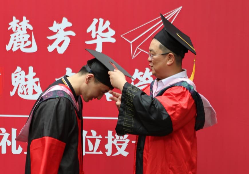 公司学位评定委员会委员分三组为毕业生拨穗并颁发学位证书