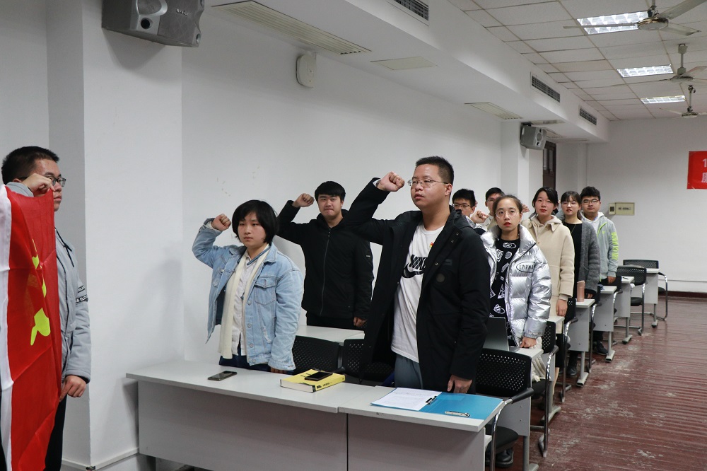 杨锦滔老师代表公司党委宣读了公司2019年下半年新发展预备党员名单。随后,王浩老师带领全体2019级下半年新发展预备党员面向党旗,庄严宣誓。2017级本科生石一琨同学作为预备党员代表发言,“习总书记说:我们都是追梦人,希望座各位同学一同努力奔跑,一起争做追梦人。”