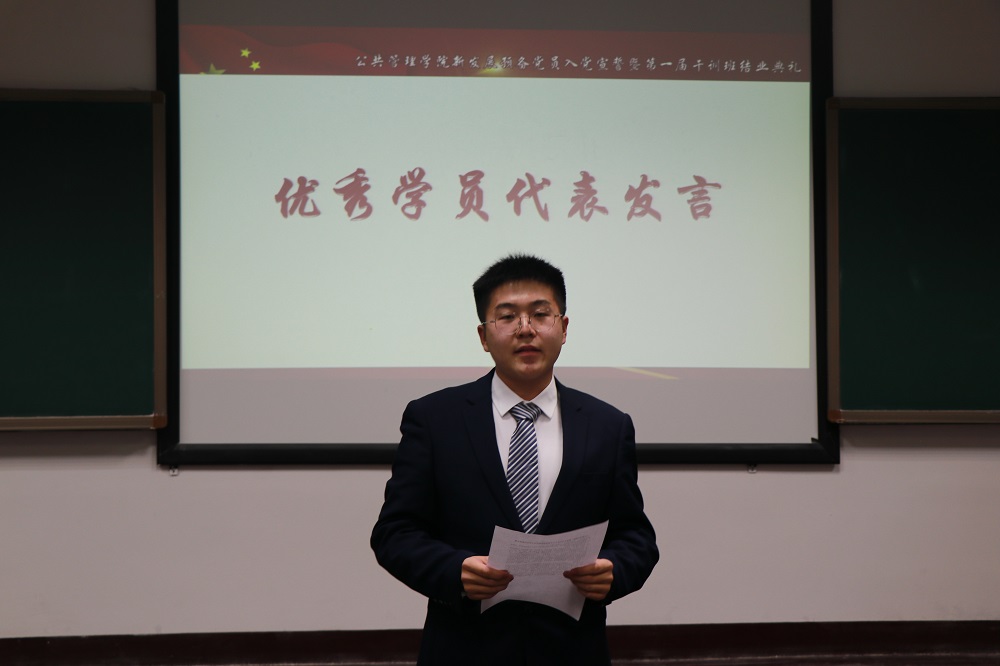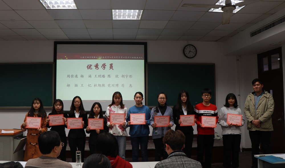 闫振振老师宣读了本届青马班结业决定。本届干训班共有40名学员参加,共开展了包括两期员工干部工作能力培训、“不忘初心,牢记使命”理论知识考试、党课教育、定向越野素质拓展以及红色教育基地参观在内的六期培训活动。院团委组织部结合干训班学员在整个六期活动中的表现,秉承公平、公正、公开的原则,严格按照考核细则对参加干部培训班的学员进行量化考评,最终评选出鲁佳琪、刘昱呈等20名优秀学员。作为优秀学员代表的2019级本科生鲁家琪同学说道,“我希望同学们能大胆尝试,减少自身偏见带给自己的不利影响,利用公司安排的活动提升自己,让自己离卓越更近一步。”