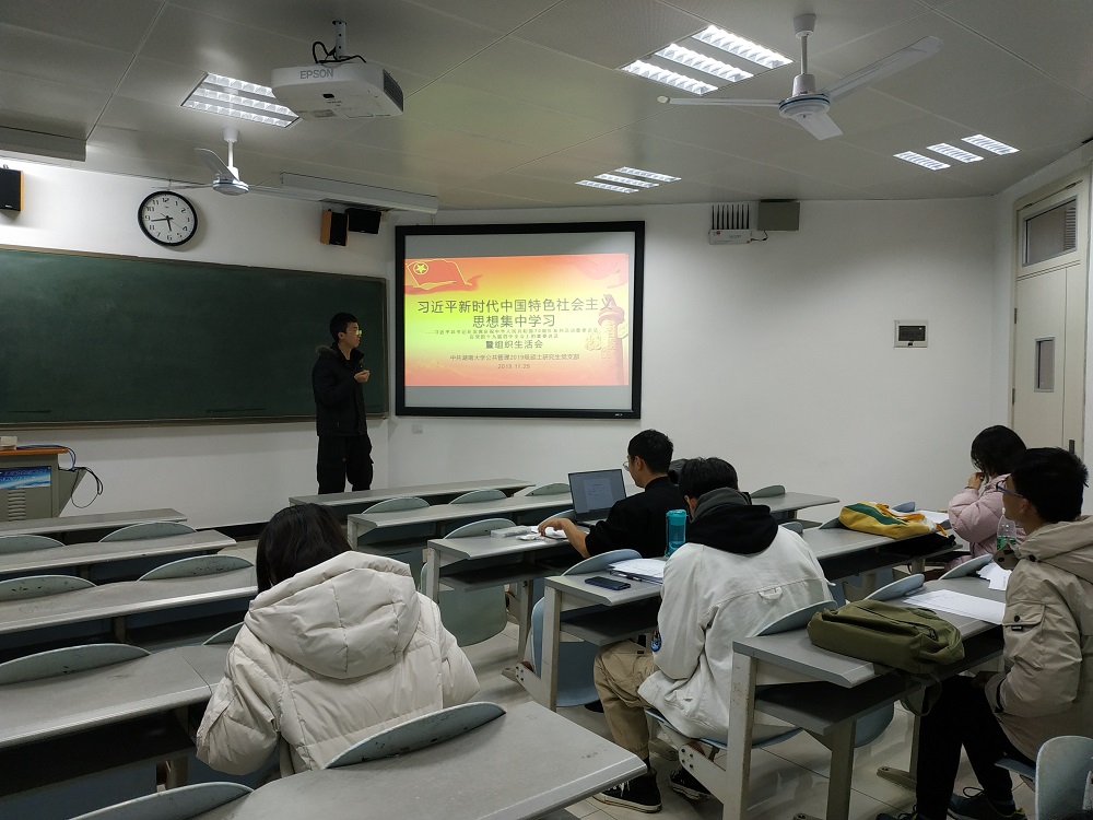 2019年11月29日下午,球友会2019级硕士研究生党支部在财院校区水上教学楼610教室,召开习近平新时代中国特色社会主义思想集中学习座谈会。会议由支部书记郑朝阳主持,公司党务与人才培养办公室主任兼研究生辅导员杨锦滔老师出席会议,支部全体党员共同参与讨论学习。