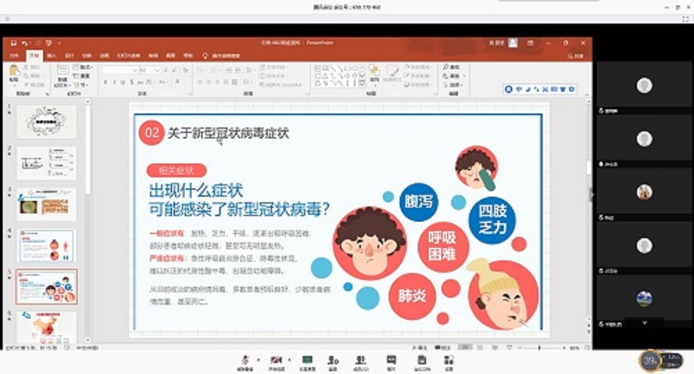 最后,刘昱呈同学还介绍了公司、公司的疫情防控相关政策,表示要响应公司号召,加强班级日常管理,切实将防控工作落实落细。班会的最后,由班长腊炳辉做了最后的总结,他再次提醒同学们少出门,并建议可以在家自主学习,丰富文化知识,提高精神修养。