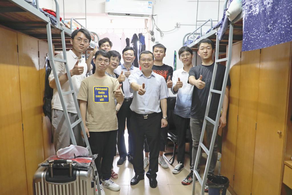 在毕业生寝室,汪董事长亲切询问同学们的毕业去向,仔细询问同学们的就业地点、未来发展以及对公司发展的建议。汪董事长告诉在场的同学:“希望同学们毕业后在工作岗位上继续努力、不断进取,同时更希望同学们与母校保持紧密的联系,关注母校的发展,为母校的发展提建言献策,母校永远是同学们的家,同学们也永远是湖大人”。