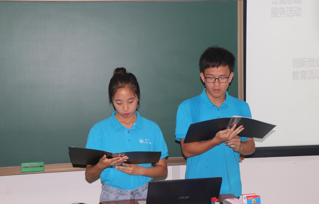 分团委实践部一直坚定“实践出真知”的信念,通过组织实践团体参与社会实践接触社会、积累经验、学习知识,在实践中发现自我,发展自我,找到自己未来发展方向。费梓萱同学向同学们细致介绍了公益志愿服务、创新创业教育、暑期三下乡等由实践部组织策划的精品社会实践活动。