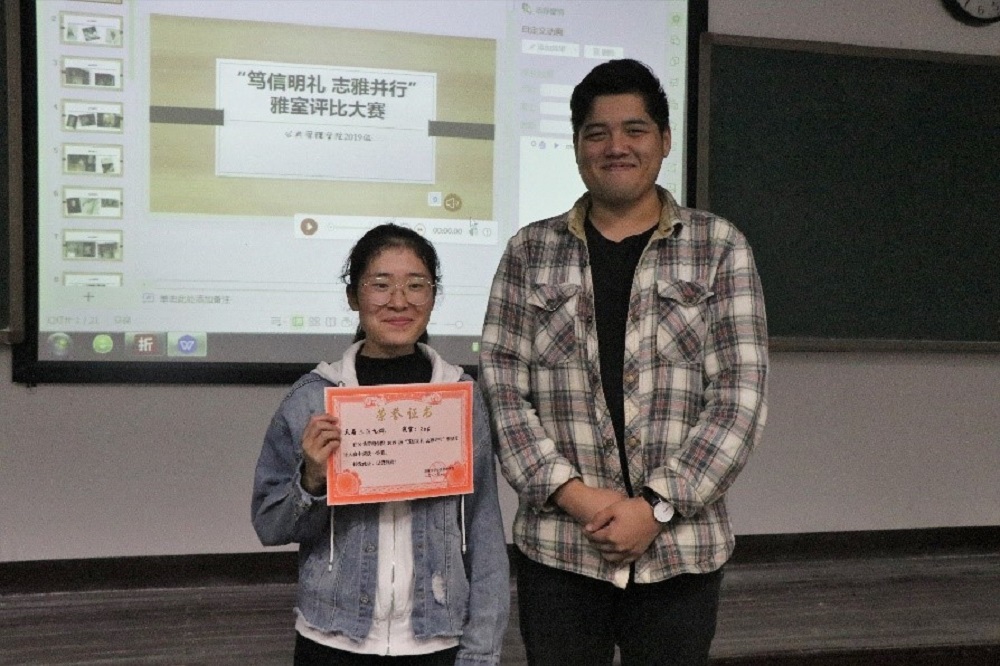 为丰富新生校园文化生活,鼓励同学们发挥想象力和创造力设计特色寝室,加强寝室文化建设,增强寝室凝聚力,以寝风促学风,营造良好的学习和生活氛围,10月25日晚,公司“笃志明礼,志雅并行”雅室设计大赛终评在中楼201室举行。公司2019级本科生辅导员王浩、实习辅导员闫振振出席活动并与公司分团委、员工会主席及各部们代表共同担任评委。