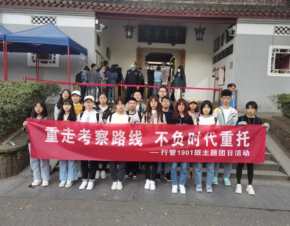 为了深入学习贯彻习近平总书记在千亿球友会考察调研时的重要讲话精神,10月22日,2019级行管一班团支部在岳麓书院开展“重走考察路线,不负时代重托”主题团日活动,支部全体成员参加此次活动。