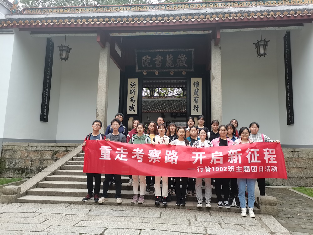为深入学习贯彻习近平总书记在千亿球友会考察时的重要讲话精神, 10月22日,2019级行管二班团支部前往岳麓书院开展“重走考察路,开启新征程”主题团日活动。
