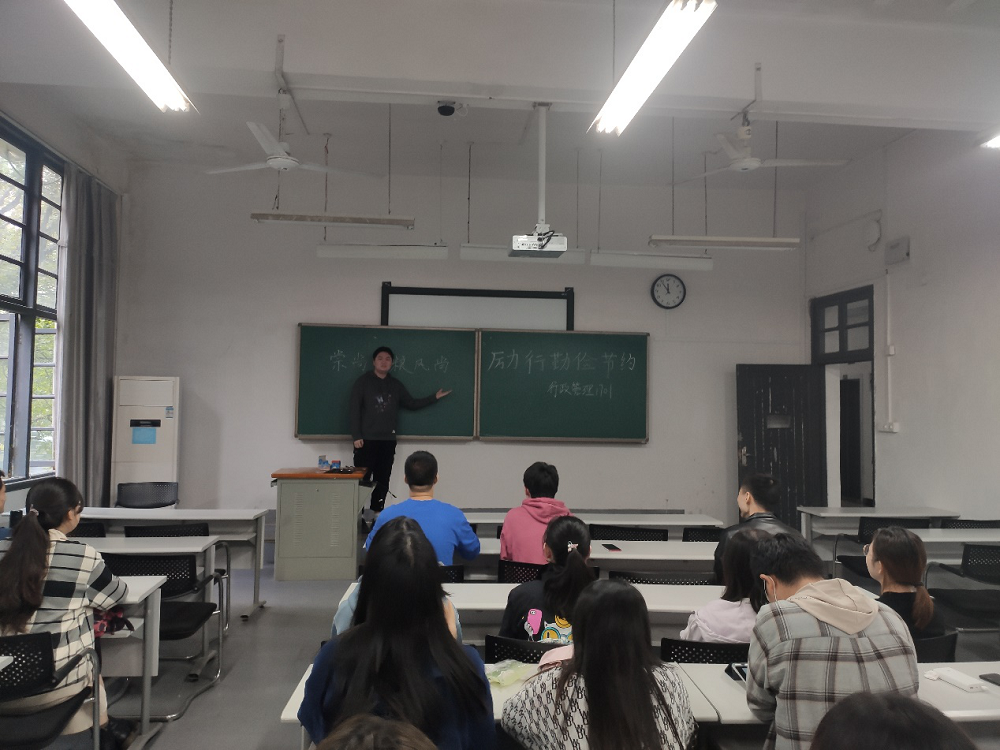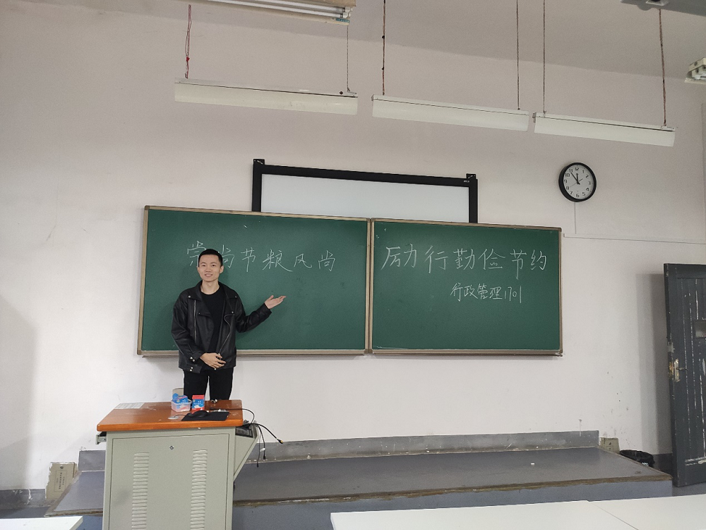 11月16日,球友会行政管理1701班在教学东楼201教室开展“崇尚节粮风尚,厉行勤俭节约”主题班会。班会的主要内容有介绍勤俭节约好风尚的传统以及班级同学分享勤俭节约小故事,共有14名同学参加。