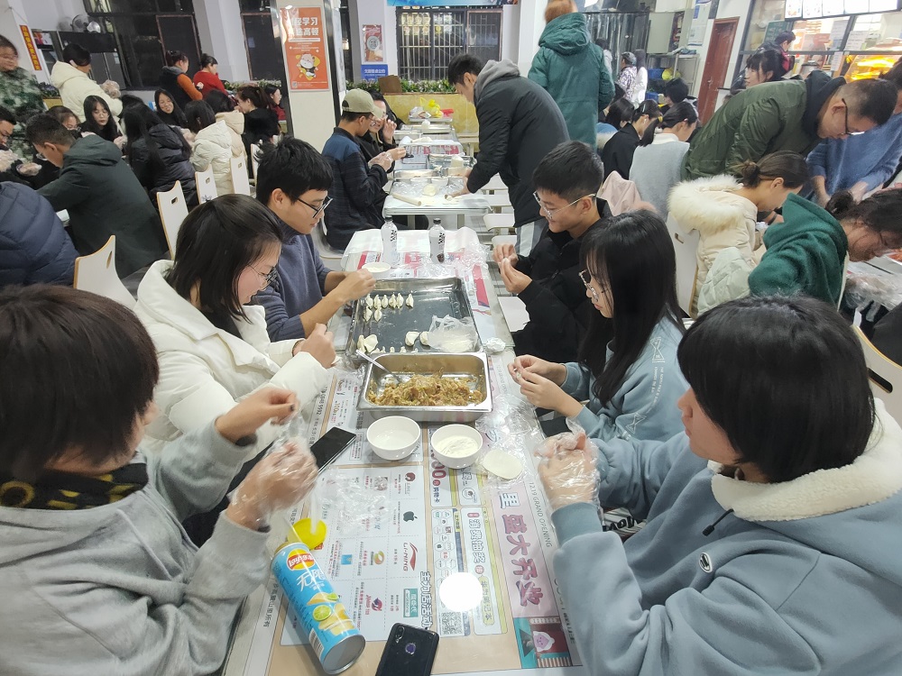 本次活动中,全体同学共分为四组,由各组组长带领组员积极参加活动中各个环节。在包饺子环节,同学们分工明确,热情高涨,各自发挥想象,大胆创新,包出了形状各异、富有特色的饺子。随着一盘盘饺子的出锅,同学们边吃边相互交谈着自己家乡的冬至习俗,在愉快的氛围中品尝自己亲手包的饺子,感叹饺子味道的鲜美,收获满满的“自己动手,丰衣足食”的幸福感。其中,蔡朋城同学吃到了花生馅的饺子,获得一张茶颜悦色奶茶券,成为冬至活动的幸运儿。