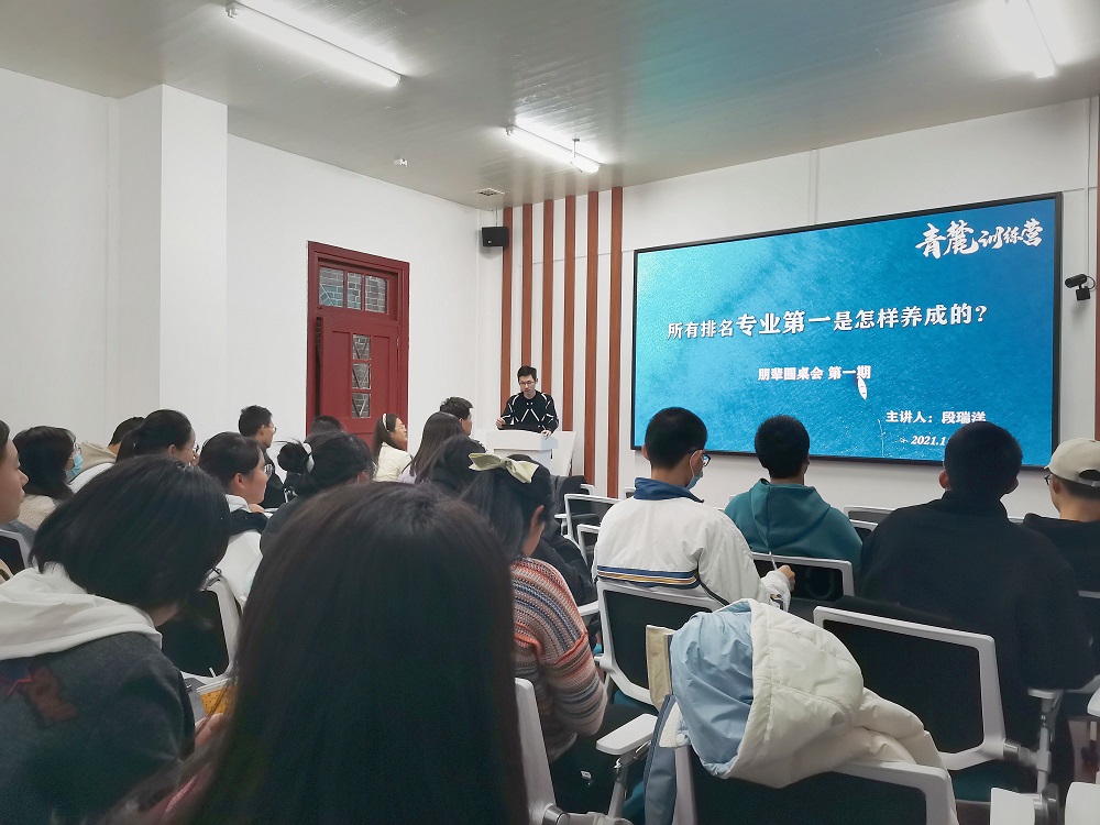 为帮助青麓训练营的大一营员们做好大学四年专业学习规划,以及提供相关学科的学习与应试指导,11月7日晚,球友会“青麓训练营第一期朋辈圆桌会:学习经验交流分享”在公管院院楼221教室顺利开展。本次会议由18级段瑞洋、20级姚璐、20级王麒隆主讲,青麓训练营40名营员全员参加。