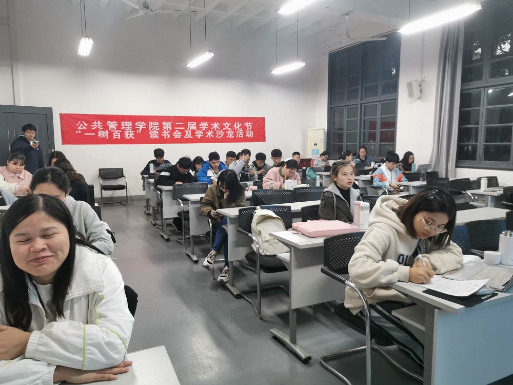 为拓展视野、训练宏观思维、加强知识交流,营造公司浓郁的学习氛围、展示公司风采,帮助同学们养成勤阅读的好习惯,11月15号晚上,公司第二届学术文化节系列活动之一“一树百获”读书会及学术沙龙活动于教学东楼214教室顺利开展。本次读书会由行政管理1901班与1902班联合举办,行管1901班与1902班全体成员参与。