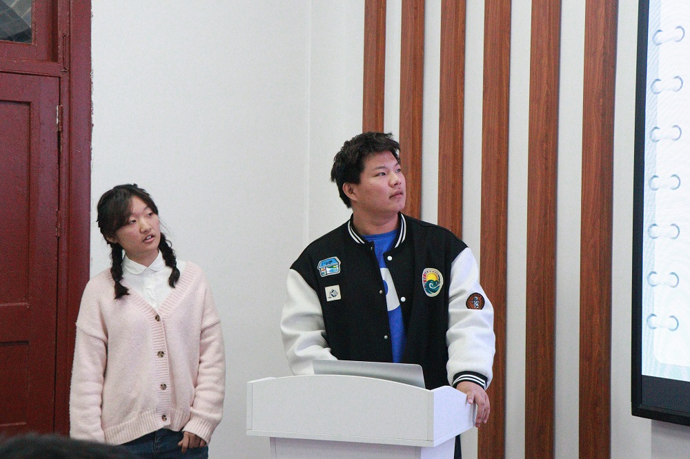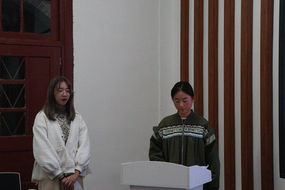 行管2102班杨斐然同学、汤雨萱同学介绍本班建设方向。在学风建设方面,建立学习小组;在思想建设方面,着力提高同学们的政治觉悟,鼓励同学们积极提交入党申请书;在日常管理和服务方面,本班将逐渐确立形成以班委为核心,寝室长起牵引作用的责任制,制定明确的班级制度,努力实现文明寝室挂牌为70%的目标,形成“互帮互助,团结一心”的班级氛围。此外,行管2102班还组建了登山小队,一起看日出,参与同学收益颇丰。