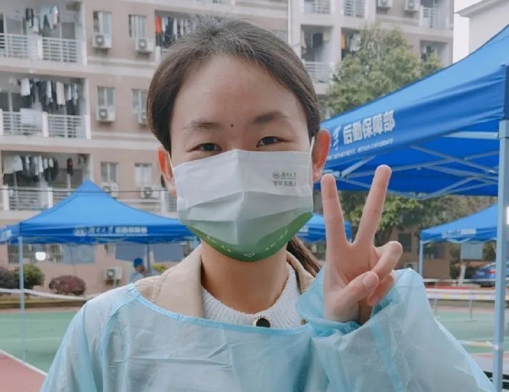21级年级团总支翁嘉怡同学是核酸检测志愿者,在现场维持秩序一站就长达6.4小时。此外,她还担任二区一栋二层层长,负责统计信息(如:物资缺乏情况、订餐数量等)、传递信息(如:核酸检测通知、取餐安排等)、发放物资等工作。为了提高效率,她组建了二层志愿小花团队,组织团队运作以更好地响应楼栋长号召。封校的第一天晚上,她忙到了凌晨一点多才歇息,第二天早上七点便起床去给订早餐的寝室送早饭。为了保证楼栋里的同学们都能够及时收到核酸检测消息,她挨个寝室敲门提醒同学们下楼做核酸。待到她完成工作,回寝室继续上网课时,已经跟不上了,不得不花费课后闲暇时间来补齐课堂讲授内容。即使工作与学习已如此忙碌,翁嘉怡同学依然积极报名加入食堂志愿服务工作,成为窗口的“卖饭侠”。她认为辛苦是值得的,像她这样的志愿者很多,大家众志成城、团结一心,才能织起“防护网”,共同守护校园!