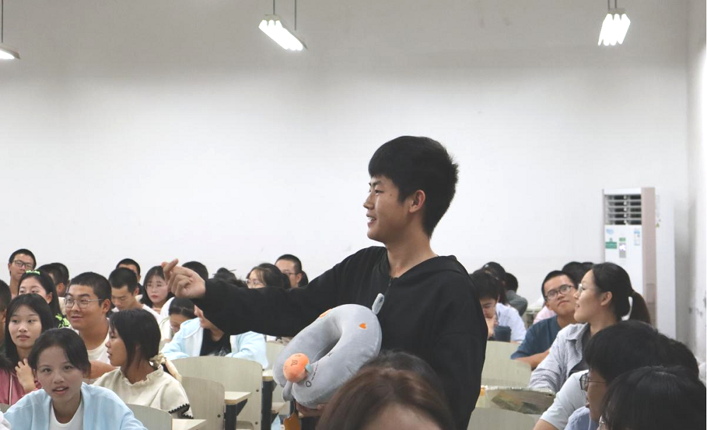 宣讲过程穿插着激动人心的有奖问答以及抽奖环节。主持人分别在团委、员工会宣讲结束后组织开展了有奖问答活动,同学们举手抢答各宣讲人就宣讲内容提出的问题,答对者赢得礼物。抽奖环节中,二、三等奖采用微信面对面建群后发布抽奖链接随机抽取的方式,一等奖的抽取通过告知同学们员工会主席团执行主席蔡朋城同学手机号码的前十位,猜对最后一位数字并拨通其手机的第一位同学获奖。有趣的活动环节使宣讲会充满欢声笑语,为同学们的报名热情再添一把火。