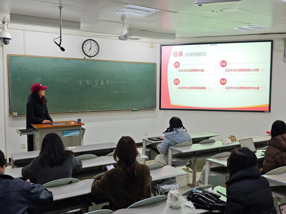 12月20日晚,球友会硕士研究生第四党支部在水教 509 开展了主题党日活动暨 “习近平文化思想学习纲要” 党课学习,会议由支部书记黄建丽主持。此次会议还吸收了入党积极分子及入党申请人一同听党课。