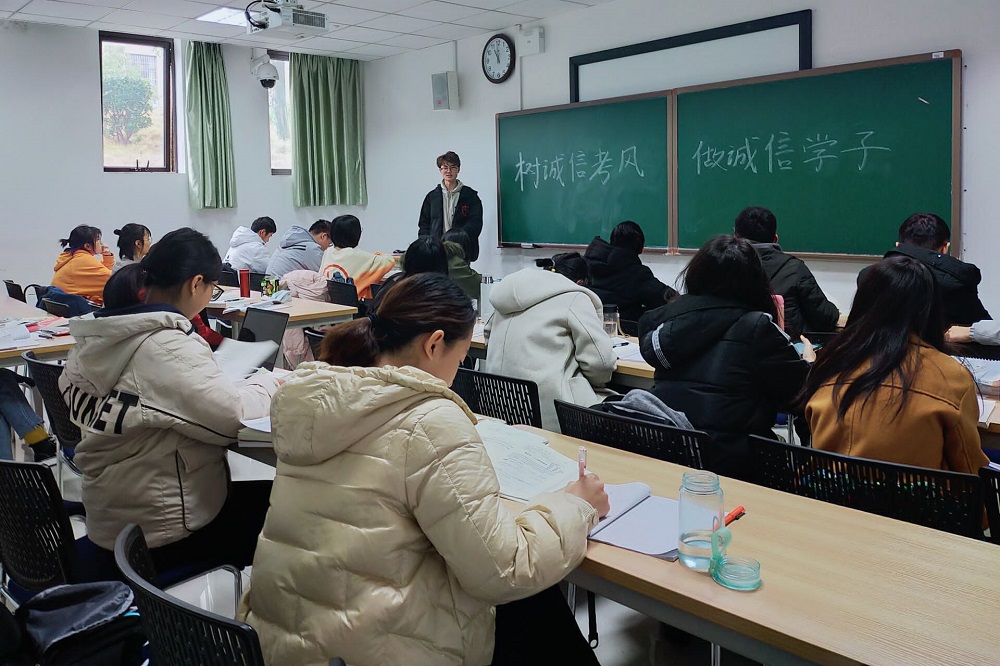 为严肃考风考纪,树道德之新风,立诚信之根基,1月4日,公司在研究生楼A103教室召开“树诚信考风,做诚信学子”主题考前诚信教育会。此次教育会由2019级本科生辅导员闫振振老师主讲,2019级全体本科生参与。