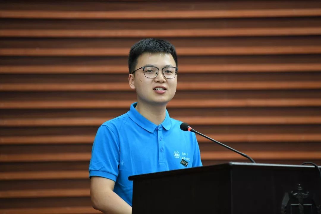 员工代表郑腾飞同学表达了对成为一名湖大学子的珍惜、骄傲和憧憬:“从今天起,我们都有了一个共同的名字——湖大学子,在这所'千年学府、百年名校'中重拾课本,聆听老师们的谆谆教诲,去感受文化的多元与醇厚,来提升我们的个人竞争力,”更体现了作为一名公管学子和青年的理想、坚持和信仰,“在前进的路上,让我们不断发扬斗争精神,增强斗争本领,秉持'实事求是,敢为人先'的校训精神,奋力拼搏,努力积聚创新能力,担当时代责任,勇立创新潮头,在国家创造发展中做出应有的贡献。”