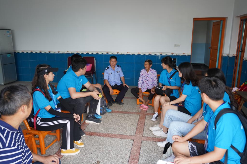 双峪村村干部和驻村帮扶工作队成员亲切接待了团队一行人,并在村部召开座谈会。村支部书记陈德位介绍了包括地理环境、基础设施建设、产业发展、环境治理、精神文明建设、基本生活保障制度和党建工作等村级情况,驻村帮扶工作队队长王璞介绍了该村精准扶贫工作基本情况和未来展望。随后村支部书记陈德位和村文书陈红荣就“三下乡”服务团成员所提出的问题进行了回答,他们表示,党员干部是该村脱贫振兴的中坚力量,发挥着重要作用;扶贫工作必须牢牢对标‘一超过、两不愁、三保障’标准;乡村振兴要实现农民的短期利益和长期利益的统一;精准扶贫要在做‘准’和做‘实’上肯下苦功夫。