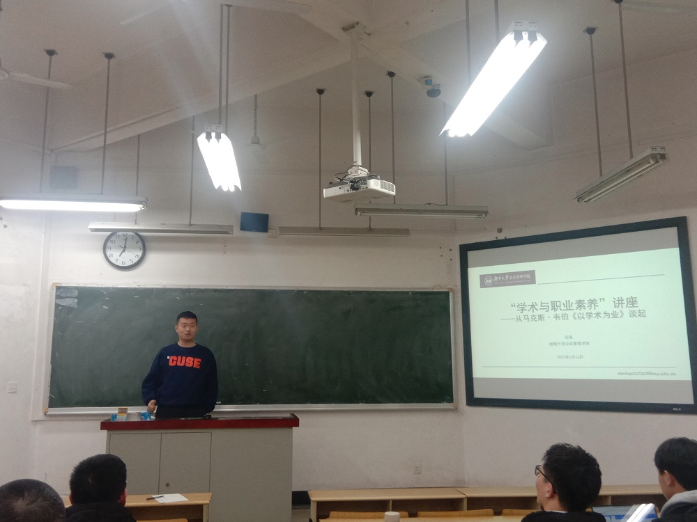 球友会学术与素养专题系列讲座之《以学术为“业”》于2021年1月14日在千亿球友会北校区二教204室开展,本次讲座主讲人为公司经理李连友教授以及公司助理教授任皓老师,2020级全体研究生参与此次讲座。