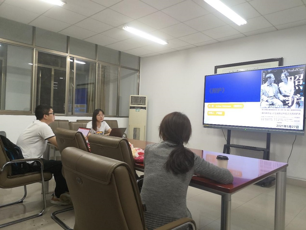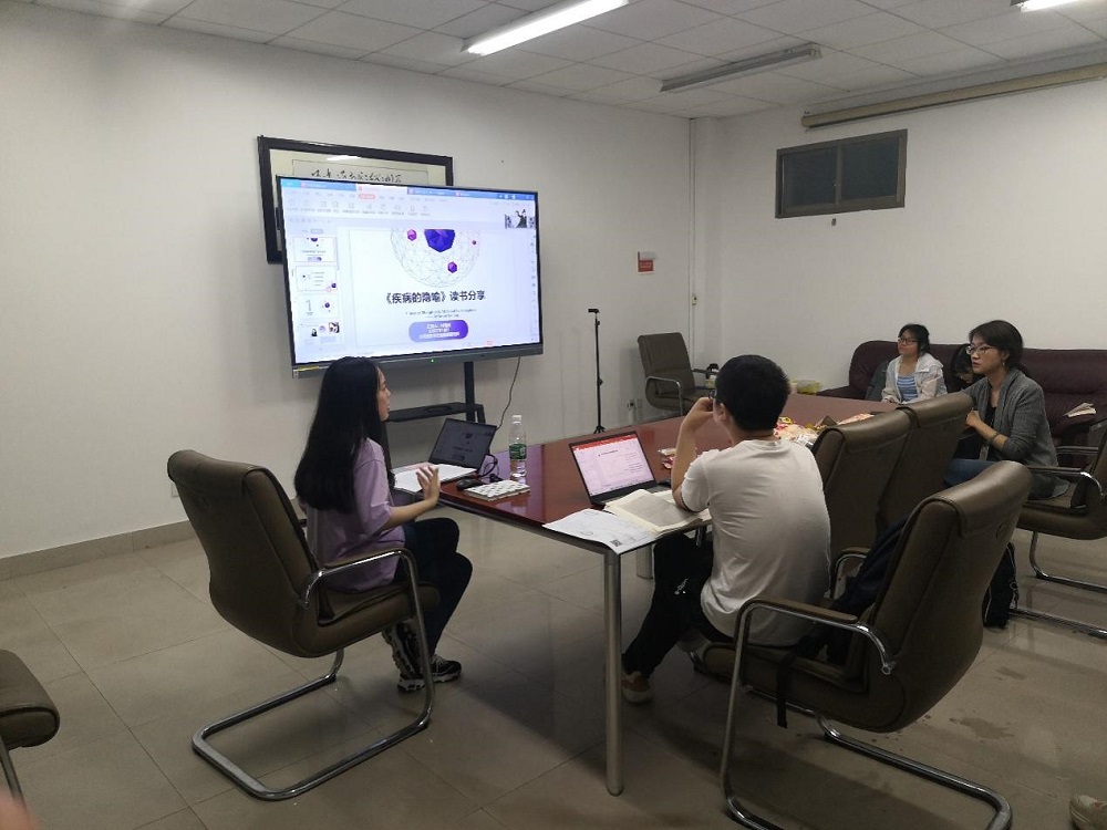 2021年5月28日,公司公共健康与社会保障研究所“品读经典”第5期读书会在法学楼423会议室成功举办。博士研究生闫国章与硕士研究生叶珺洁向我们分享了《疾病的隐喻》一书,硕士研究生韦海蓓与卢缘圆向我们分享了《照护》一书。本次读书会由轮值教师周蔚老师主持,何文老师作为点评嘉宾参与讨论。