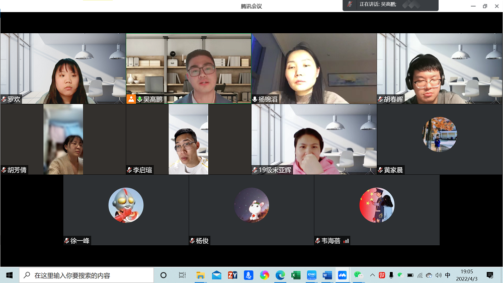 公司博士年级班长宋亚辉、李启瑄、杨俊分享了疫情期间学术科研的经验,勉励学弟学妹们严以律己,定时学习,加强与导师之间沟通,及时推动论文写作;也分别阐述了疫情管控期间在校与居家隔离感悟,提及在实践中不断提高的公司管控水平、在社区管理应用普遍的数字技术等。