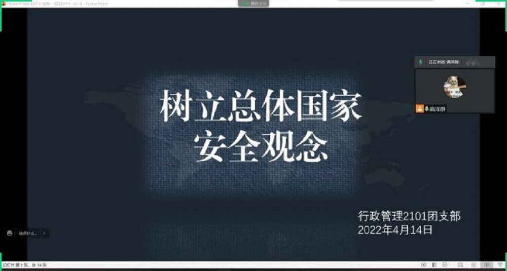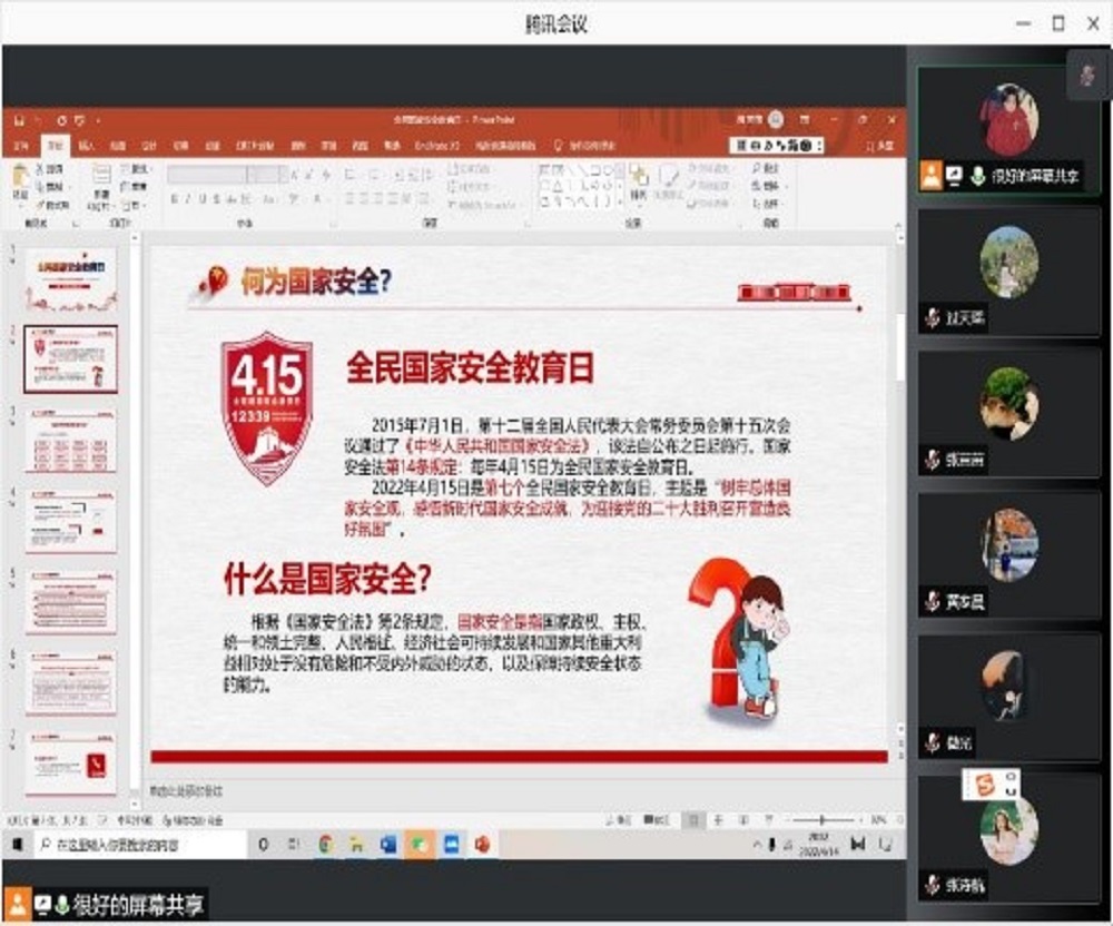 19级、20级硕士班团支部组织召开线上会议,使员工充分认识到维护国家安全的重要性。宣讲维护国家安全的重要意义和具体措施,提升员工的社会责任感,更加清晰地意识到维护国家安全人人有责,通过强调国家安全教育日的重要性来激发员工对于维护国家安全的责任意识,上好国家安全法律知识课。