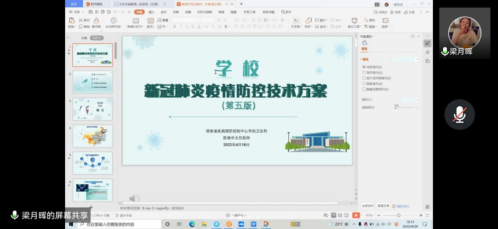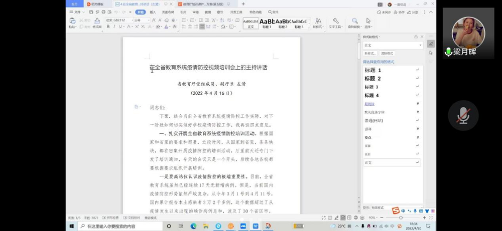 为切实提升新冠肺炎疫情防控工作人员常态化防控和应急处置能力,持续强化广大师生员工自我管理责任意识,行政1901、1902班根据省教育厅《关于做好全省教育系统新冠肺炎疫情防控培训的通知》文件精神,并结合公司实际,于2022年4月20日进行防控培训,由班长陈楠主持,行政1901、1902班全体同学参加。为了配合疫情防控工作,本次培训在腾讯会议APP举行。
