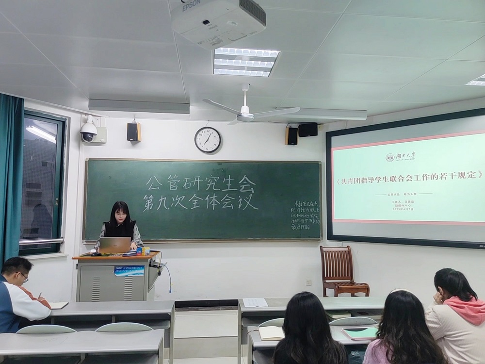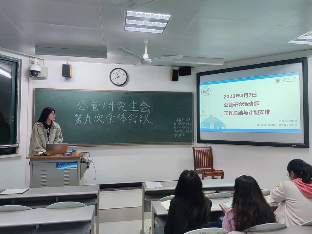2023年4月7日晚,球友会研究生会第九次全体会议在千亿球友会财院校区水上教学楼502教室召开。综合服务部负责人叶林康主持会议,研究生会全体成员参会。