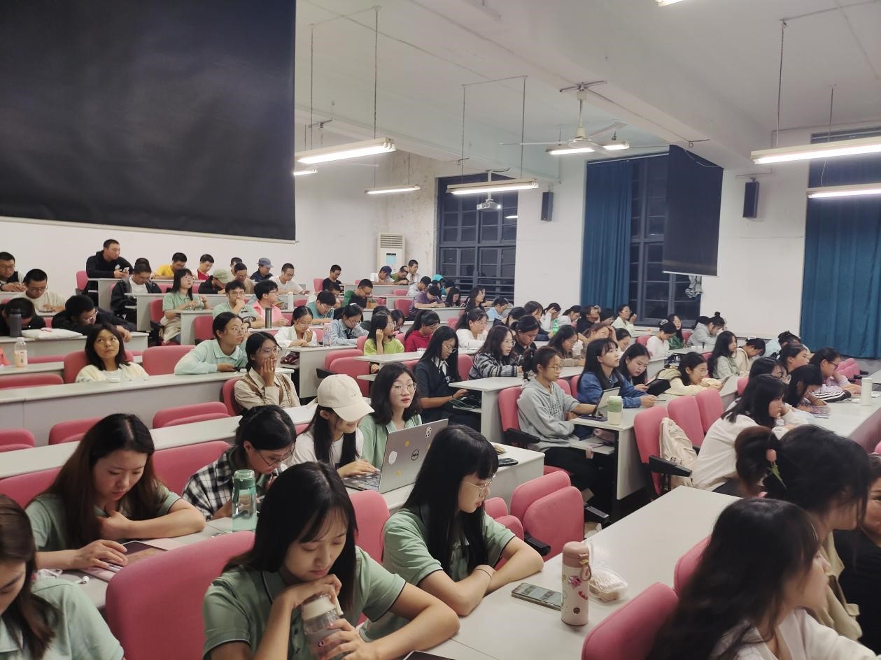 在轻松愉快的氛围中,林老师将心理学理论与具体事例相结合,为2023级本研新生详细讲解了应该如何正确认识自己的心理健康状态,并全面介绍了本科生和研究生阶段可能会面临的心理健康挑战,包括学业压力、人际关系、就业选择等。